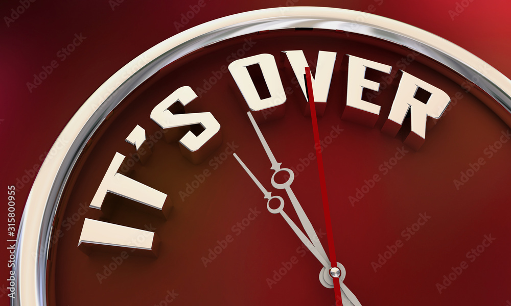 Its Over Done Finsihed Final Ending Deadline Clock Words 3d Illustration