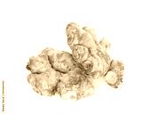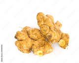 Studio shot organic homegrown two ginger roots isolated on white
