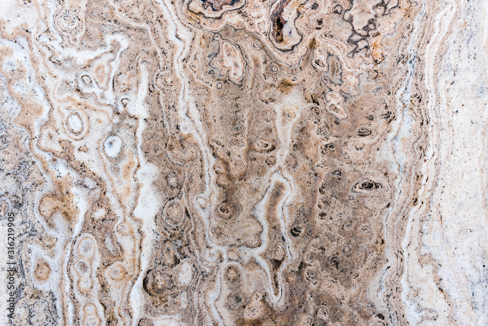 Smooth surface texture of stone, White beige or ecru color striped wave pattern of marble, Strong structure durable nature of rock for abstract background
