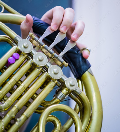 Close up of fingers on French Horn