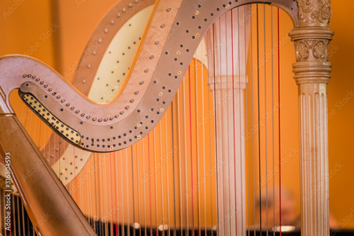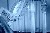 Pair of symphony harps ready to be played