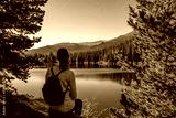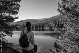 woman sitting at bear lake in summer in the rocky mountain national park, colorado united states of america