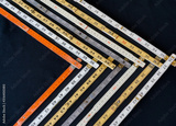 A chevron of folding rulers in metric and inches on black background. Concepts of business graph or chart representing accuracy, measurement, increase, growth and results with copy space.