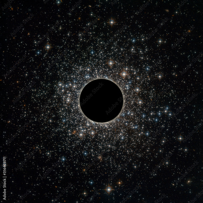 Black hole in the universe. Wormhole and stars in outer space. Astrophysics concept for background. Galaxy center with supermassive black hole in deep cosmos.