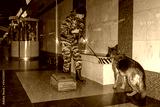 Female police officer with a trained german shepherd dog sniffs out drugs or bomb in luggage. Subway station.