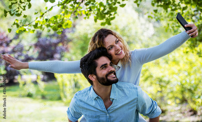 Meeting in the park. Boyfriend carrying his girlfriend on piggyback. Love, dating, romance