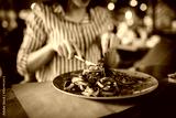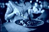 close up of woman in restaurant eating