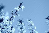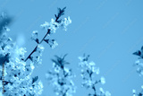 Cherry tree flowers on a sunny day. Spring background blue color toned