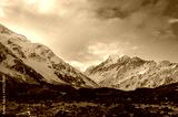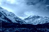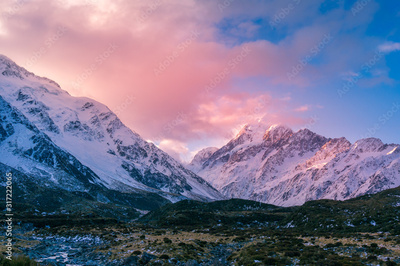 Beautiful winter mountain landscape with colorful clouds at sunset