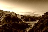 Mountain valley landscape view from above at sunset