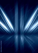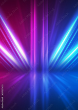 Abstract dark background with blue and pink neon glow. Neon luminous figure in the center of the stage.
