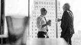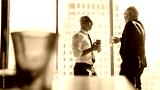 Meeting and discussion concept.business people communicating in office.Mature businessman discuss information with a colleague in a modern business lounge high up in an office tower.