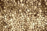 Round teak woods trees circle stumps cutted group. Deforestation. Tree stumps background. Pieces of teak wood stump background. Round teak wood stump