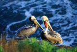View of wild brown California pelicans (Pelecanus occidentalis californicus) in the La Jolla cove near San Diego, California