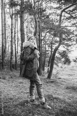 Hiking and travel along in the forest. Concept of trekking, adventure and seasonal vacation. Young woman walking in woods.