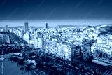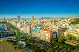 Aerial view of the popular Spanish Mediterranean beach resort town Benidorm with high rise complexes