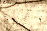 Fragment of an old brick wall painted pink paint with a shadow from tree branches on a sunny day. Abstract background