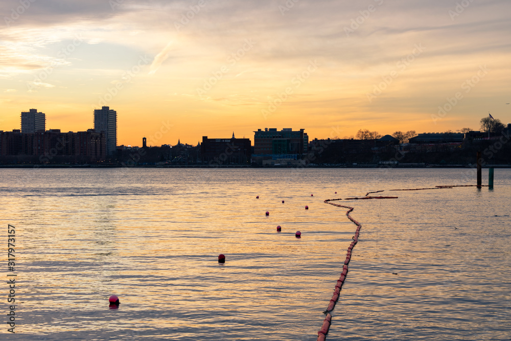 Looking across the Hudson River from New York City towards Hoboken New Jersey during a Sunset