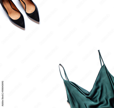Fashion clothes concept frame on the white background. Online shopping composition top view. Copy space