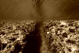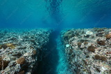 Rocky reef eroded by the swell, a trench on the ocean floor, underwater seascape, Pacific ocean, French Polynesia