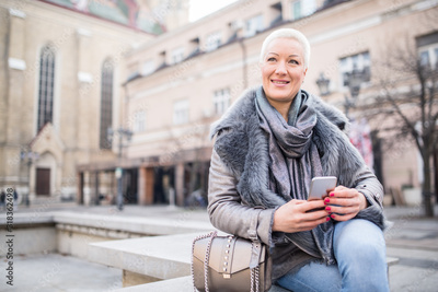 Woman on the street uses a cellphone
