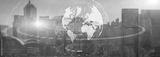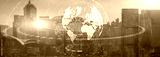 Globe Global business technology concept of modern city background. Website header.