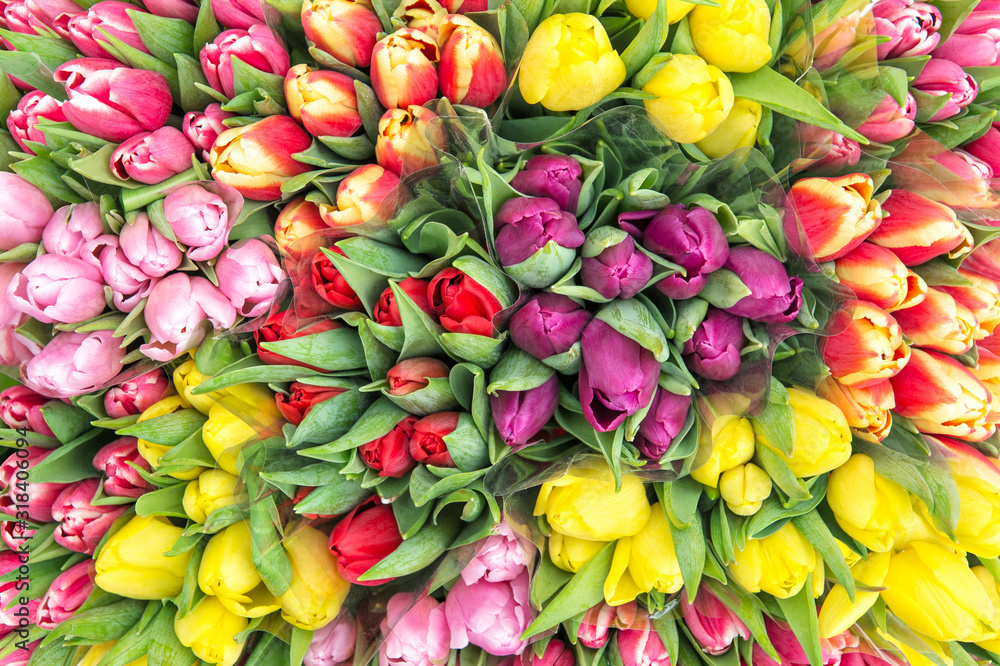 Tulip flowers Spring bouquet top view