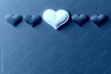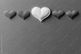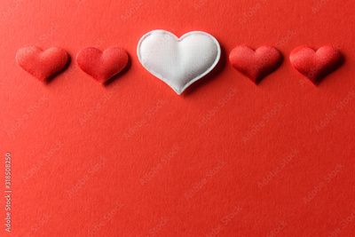 Red and white textile hearts on red paper. Valentines day background, creative texture and love concept