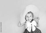 Child girl in yellow hat empty space background,caucasin kid summer design fashion clothes.
