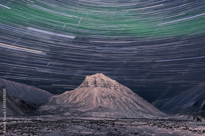 The polar arctic Northern lights hunting aurora borealis sky star track in Norway travel Svalbard in Longyearbyen city the mountains