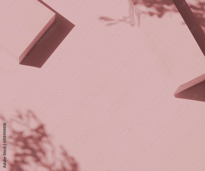Minimalistic Pink background with geometric shapes and shadows from tree. Copy space.