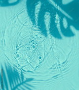 Blue water texture background on the noon sunlight with tropical leaves shadow.