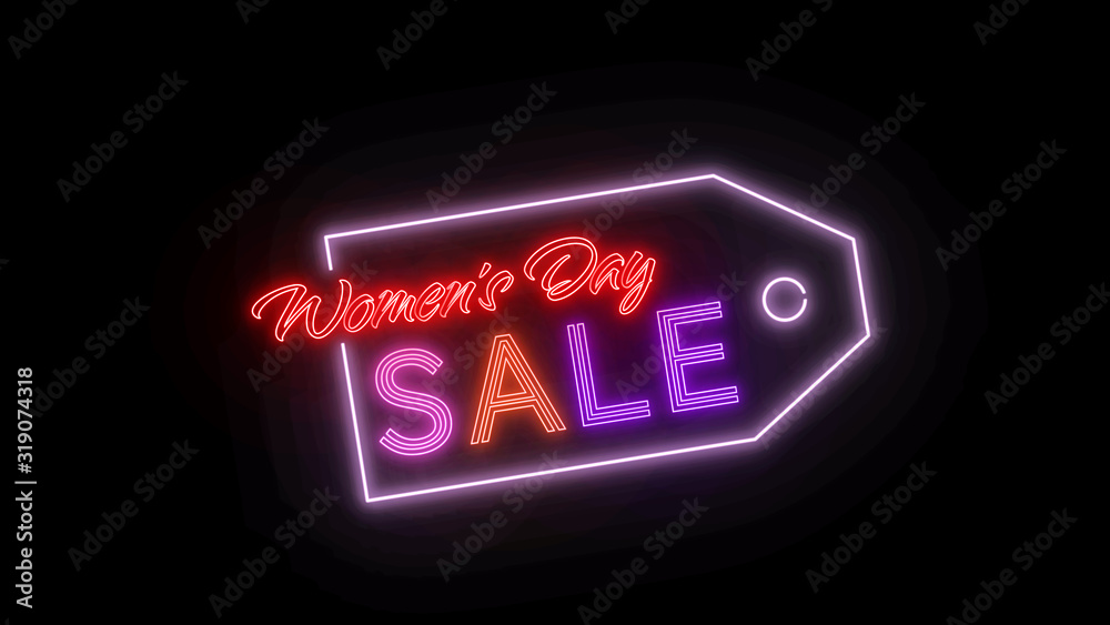 Women's Day Sale neon text word letter isolated on black color for promotion sale and for clearance sale and for promote sale season.