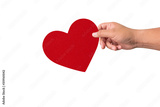 Hand holding red heart shape card .isolated on background. Valentine or Love concept