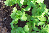 Young and healthy organic Chinese cabbage cold crop growing at home garden