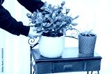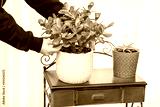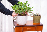 Closeup young woman hands grooming and care for indoor plant in the home garden. House plants in flower pots in garden room, indoor.