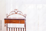 Vintage Wood And Metal Magazine Rack.Home Accessories, Modern Wood Storage Coffee Table With Natural Sunshine From Window.