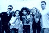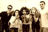 Group of four friends having fun at the park blowing confetti - Millennials playing together at sunset