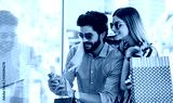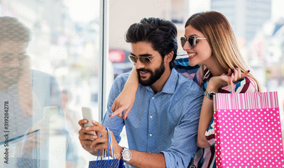 Young couple in shopping. Consumerism, love, dating, lifestyle concept