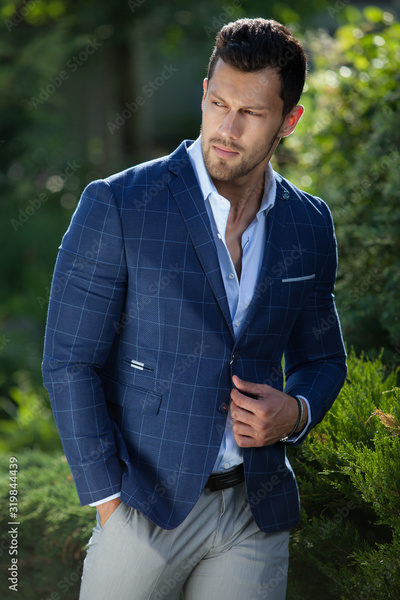 Young elegant handsome man posing outside.