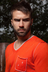 Young elegant handsome man posing outside.