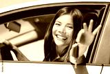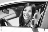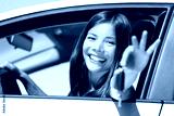 Girl car driver showing keys