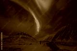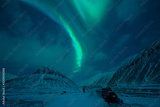The polar arctic Northern lights aurora borealis sky star in Norway Svalbard in Longyearbyen with the mountains. Travel adventure