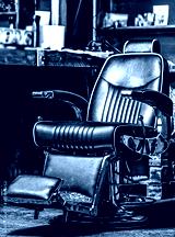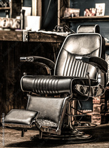 Professional hairstylist in barbershop interior. Barber shop chair. Barbershop armchair, modern hairdresser and hair salon. Beard, bearded man. Stylish vintage barber chair. Black and white
