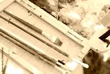 oil paint, palette, and tools of an artist. Colorful workplace of the artist with brushes and oil paints in the plein air.