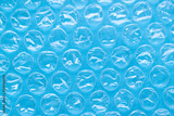 Polyethylene package material close up on the blue background. Abstract macro texture