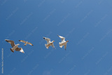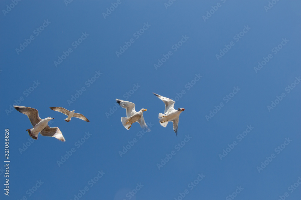 Seagulls flying in a sky