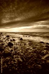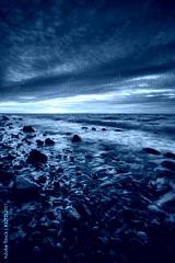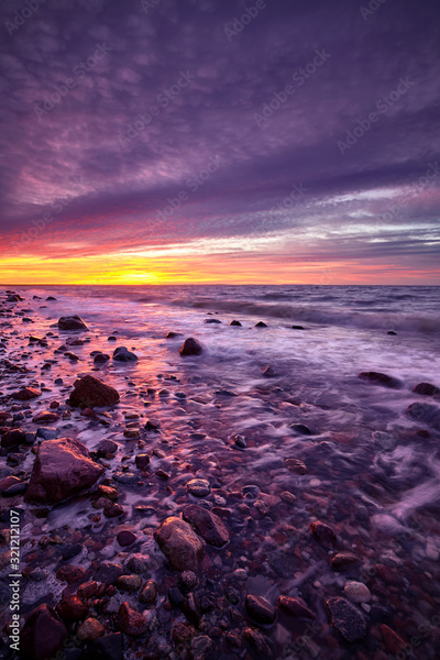 Purple sunset over beautiful beach in Wolin National Park, Poland.