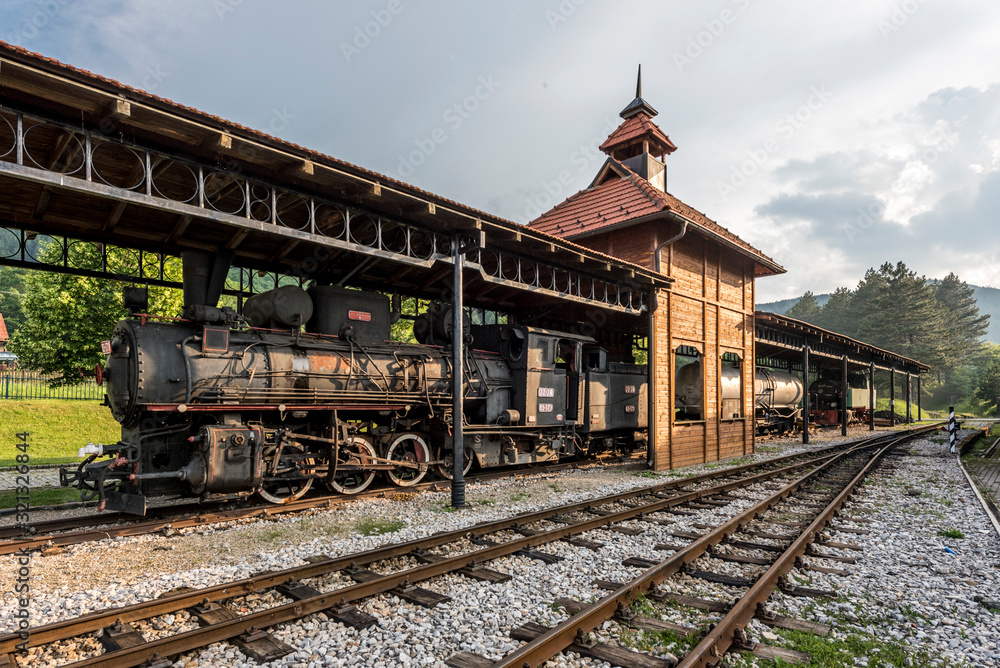 Steam engine locomotive part of sargan eight narrow-gauge railway in Serbia
