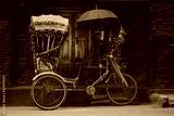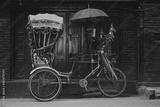 Colorful traditional rickshaws parked in the streets of Thamel district in Kathmandu city, Nepal